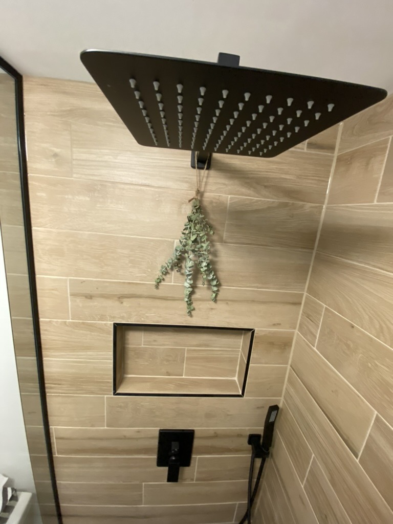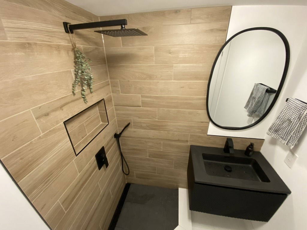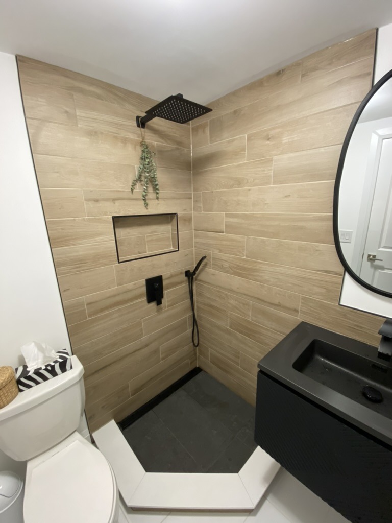 To match the shower’s design, we updated the vanity, toilet, and flooring, ensuring every element flowed effortlessly with the rest of the home’s natural, modern look. The result was a refreshing, earthy, serene and stylish space.